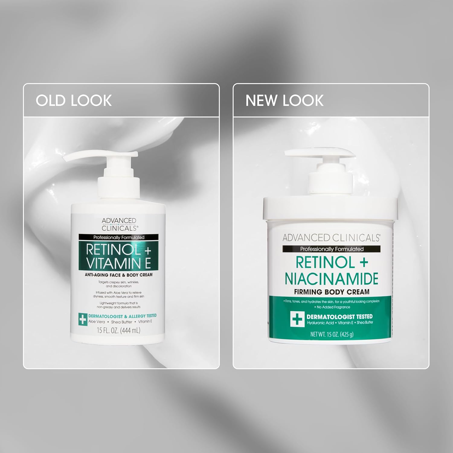- RETINOL CREAM – Vitamin A (Retinol) is considered to be the #1 Dermatologist recommended anti aging skin care ingredient. It is known to diminish the look of deep wrinkles, sagging skin, fine lines, crepey skin, & sun damage while boosting collagen production to help with firming. Advanced Clinicals Retinol Body Lotion & Face Cream Age Rewind Moisturizer is the perfect combination of anti aging ingredients with natural-antioxidants to help you promote more radiant skin and a more youthful look.