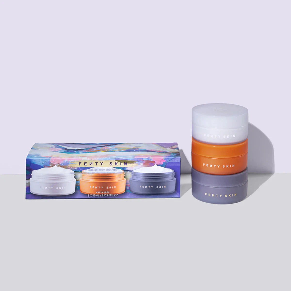Our Butta Drop body cream is bringin’ that Fenty flava for the holidays. Dip into instant hydration with this limited-edition mini whipped oil body moisturizer trio. Infused with shimmer and festive scents to keep you irresistible.